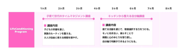OurMe Basicコースでは、夫婦ワンチームを目指す活動に加え、8ヶ月間で『子育て世代のタイムマネジメント講座』(旧早寝部)と『キッチンから整える自分軸講座』(旧捨てる部)に取り組んでいただきます。